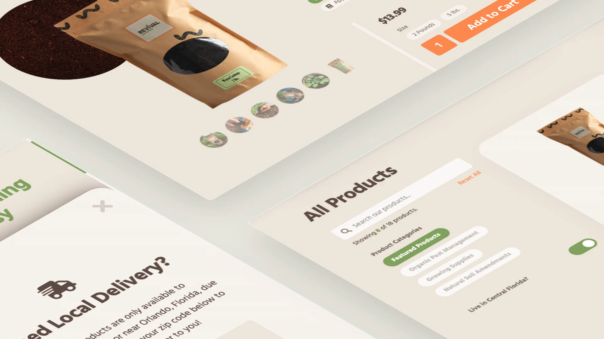 Revival Gardening is a business that provides gardening enthusiasts and those interested in becoming gardeners in Central Florida with guidance on how to improve their soil using soil amendments, worm castings, and other products.